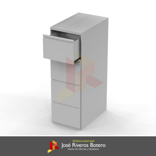 Archivador 4 gavetas de 0.45 de ancho x 0.70 de fondo x 1.34 m de alto en lámina calibre 22, acabado en pintura electroestática en polvo. Manija Troquelada
