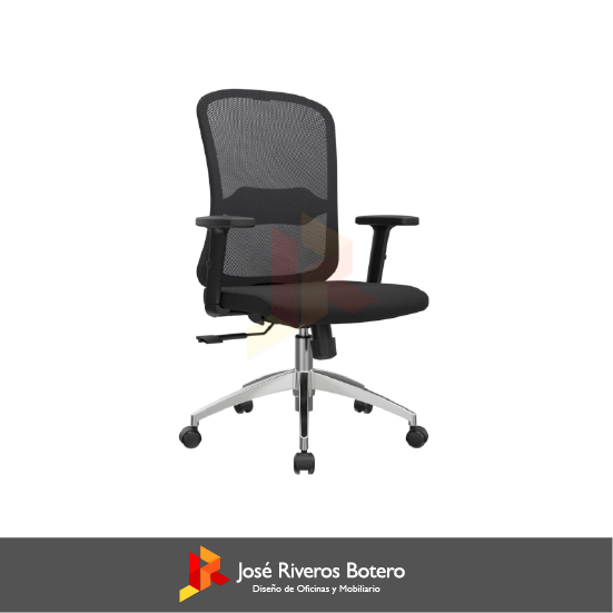 Espaldar (italiano) alto con marco perimetral en nylon, tapizado en malla poliéster con soporte lumbar regulable en altura, brazos regulables en altura con estructura y PAD en polipropileno, disponibles también en versión 3D, asiento ejecutivo en espuma laminada densidad 30, mecanismo (a elegir), base (a elegir) y ruedas goma de 50 mm.