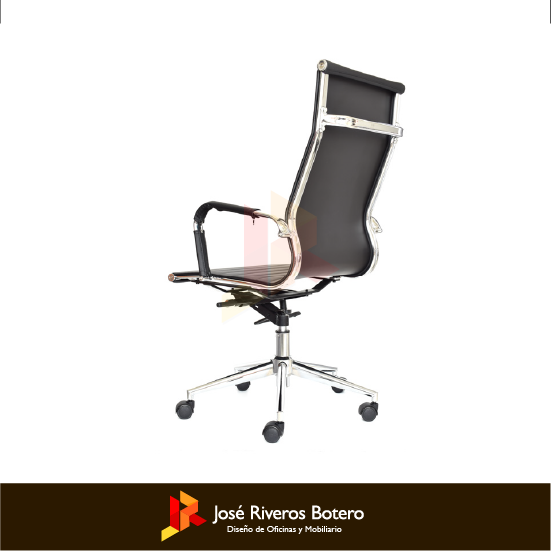 Mecanismo basculante con una posición de bloqueo a 90°, tapizado en cuero sintético de poliuretano, brazos cromados con forros en cuerina, base cromada 70 cm, ruedas nylon 50mm, colores: Negro, gris, taupe y blanco.