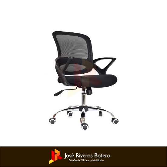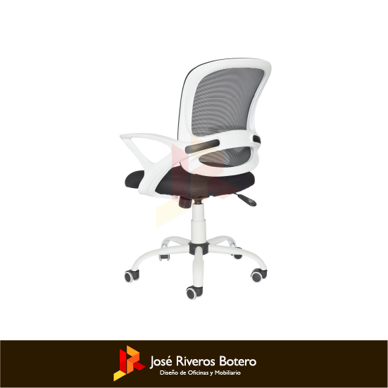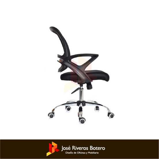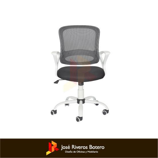 Mecanismo basculante con bloqueo a 90°, ruedas piso duro 50 mm, base 60 cm cromada, estructura inyectada en polipropileno, brazo fijo.