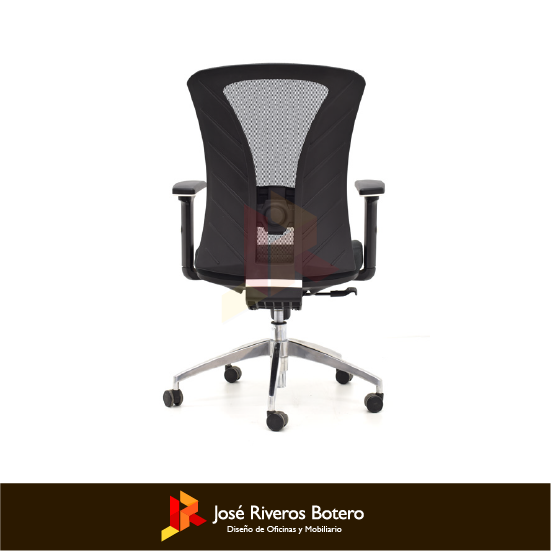 Espaldar en malla nylon, soporte lumbar regulable en produndidad, brazos 3D, asiento inyectado, tapizado en paño, mecanismo syncro 4b con antishock + slider: base nylon 64 cm, ruedas goma 50 mm, con cabecero (regulable en altura y ángulo) y base a elegir.